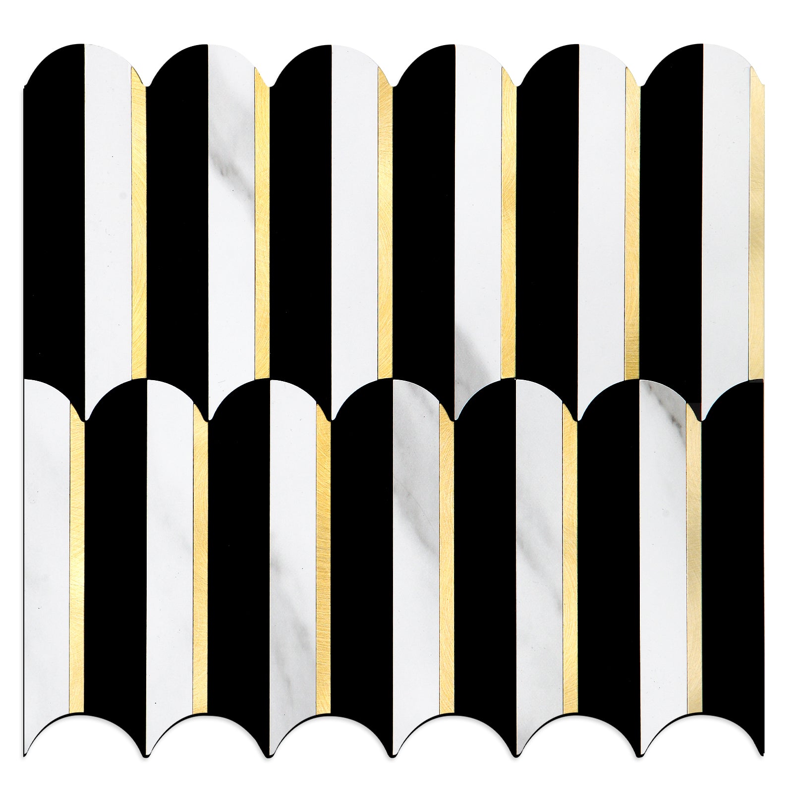11.81" X 10.47" Black & White Marble Mixed Gold Fish Scale Peel and Stick Tiles