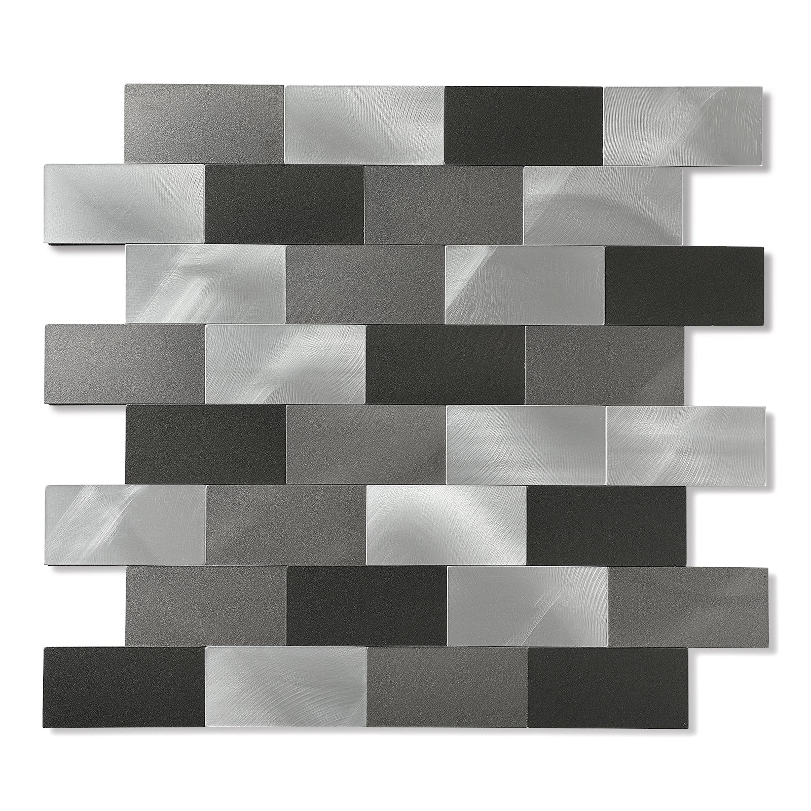 12" X 12" Silver & Black Metal Tile Backsplash Peel and Stick Tiles