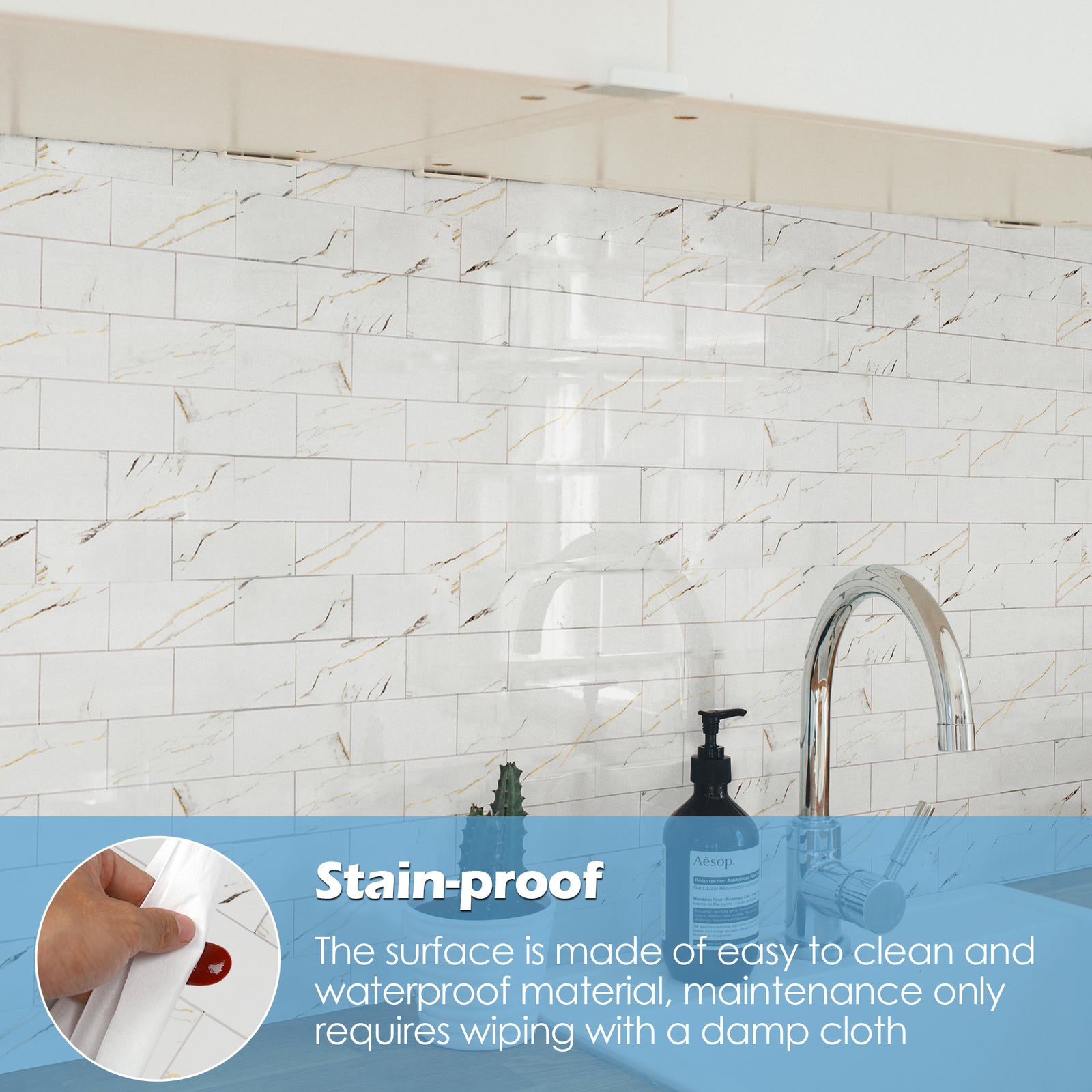 6" X 12" Marble White Peel and Stick Backsplash Linear Blend Tile