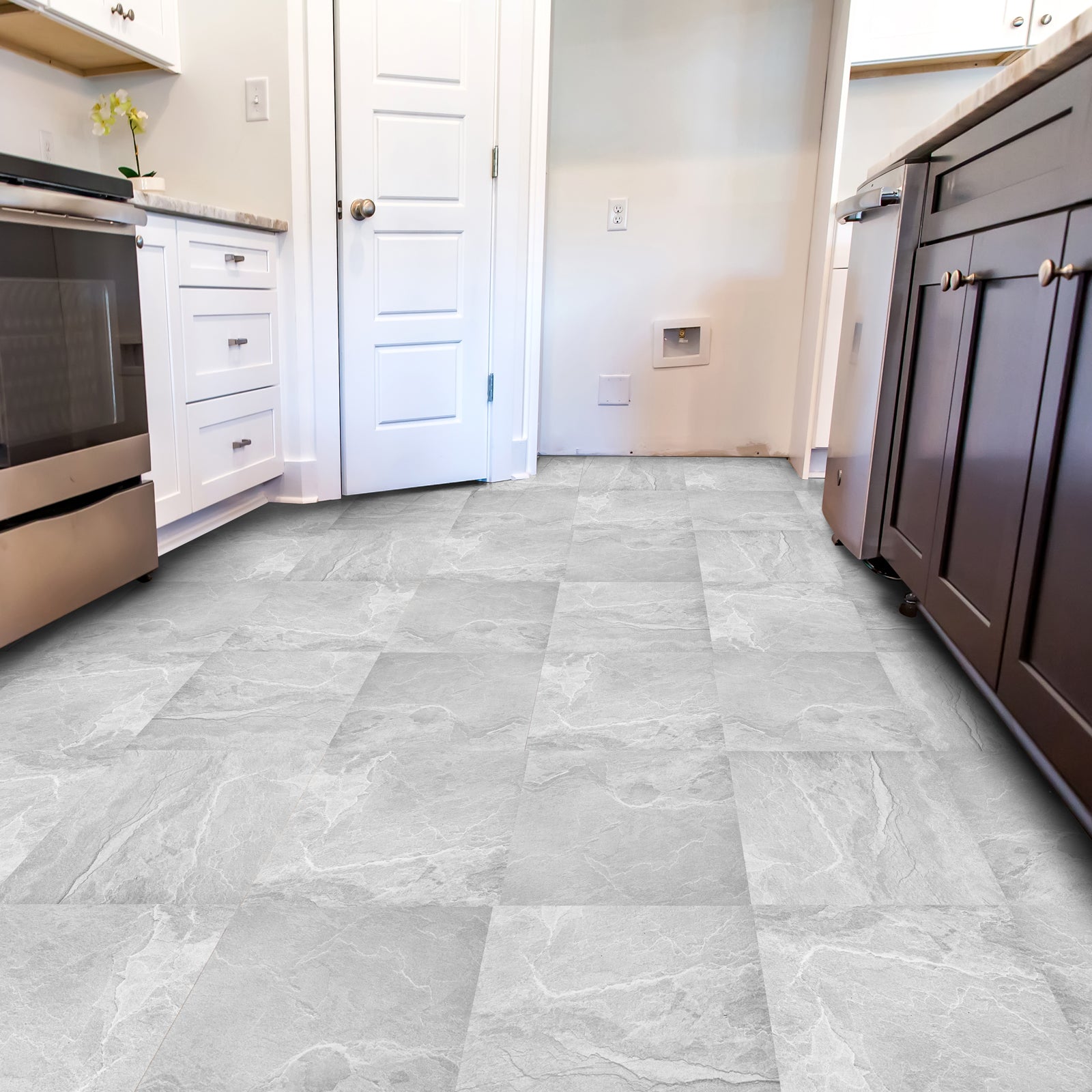 12" X 12" Shale Gray Peel and Stick Floor Tile Waterproof Vinyl Floor Tiles