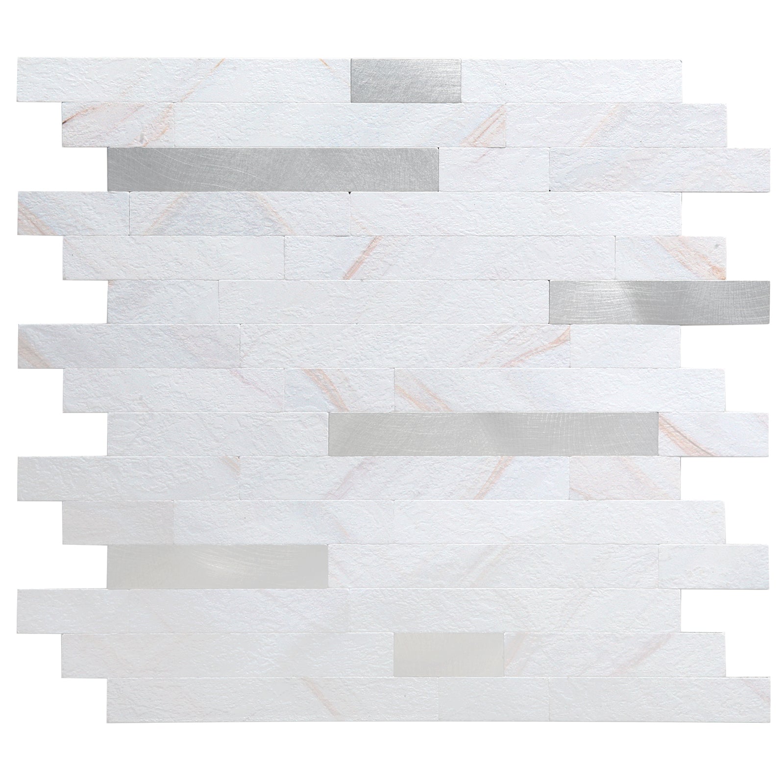 12" X 12" Colorful White Stone Peel and Stick Backsplash Premium Linear Blend Tile