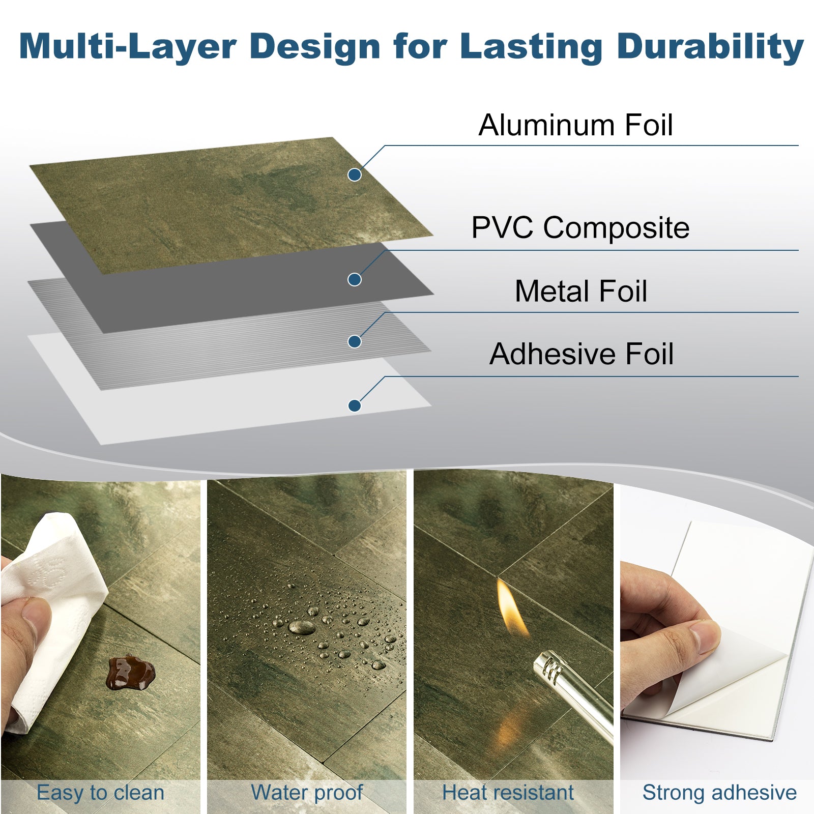• Realistic Metallic Finish: Modern metallic texture brings an elegant industrial style to any space — ideal for kitchen backsplash, bathroom walls, and laundry rooms.