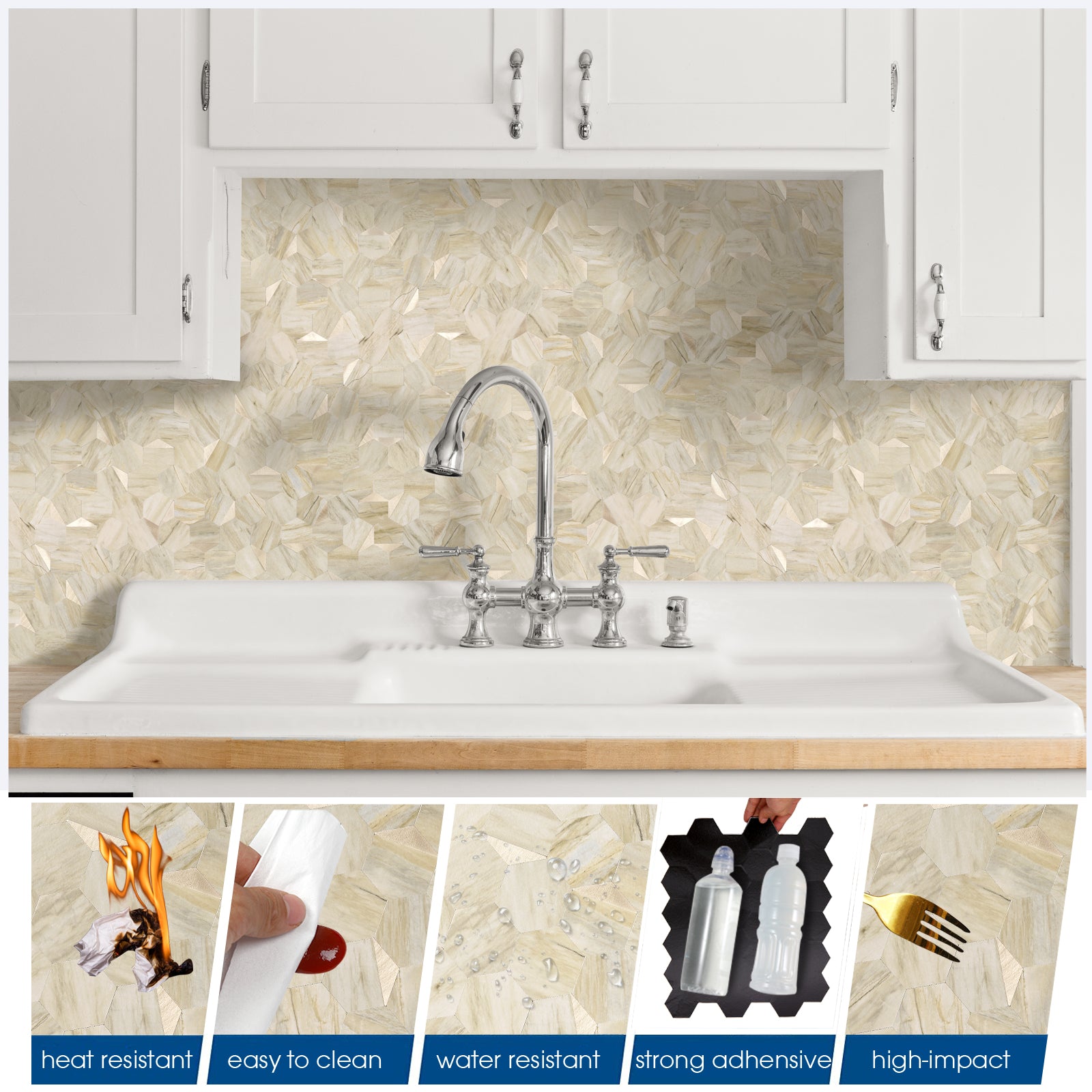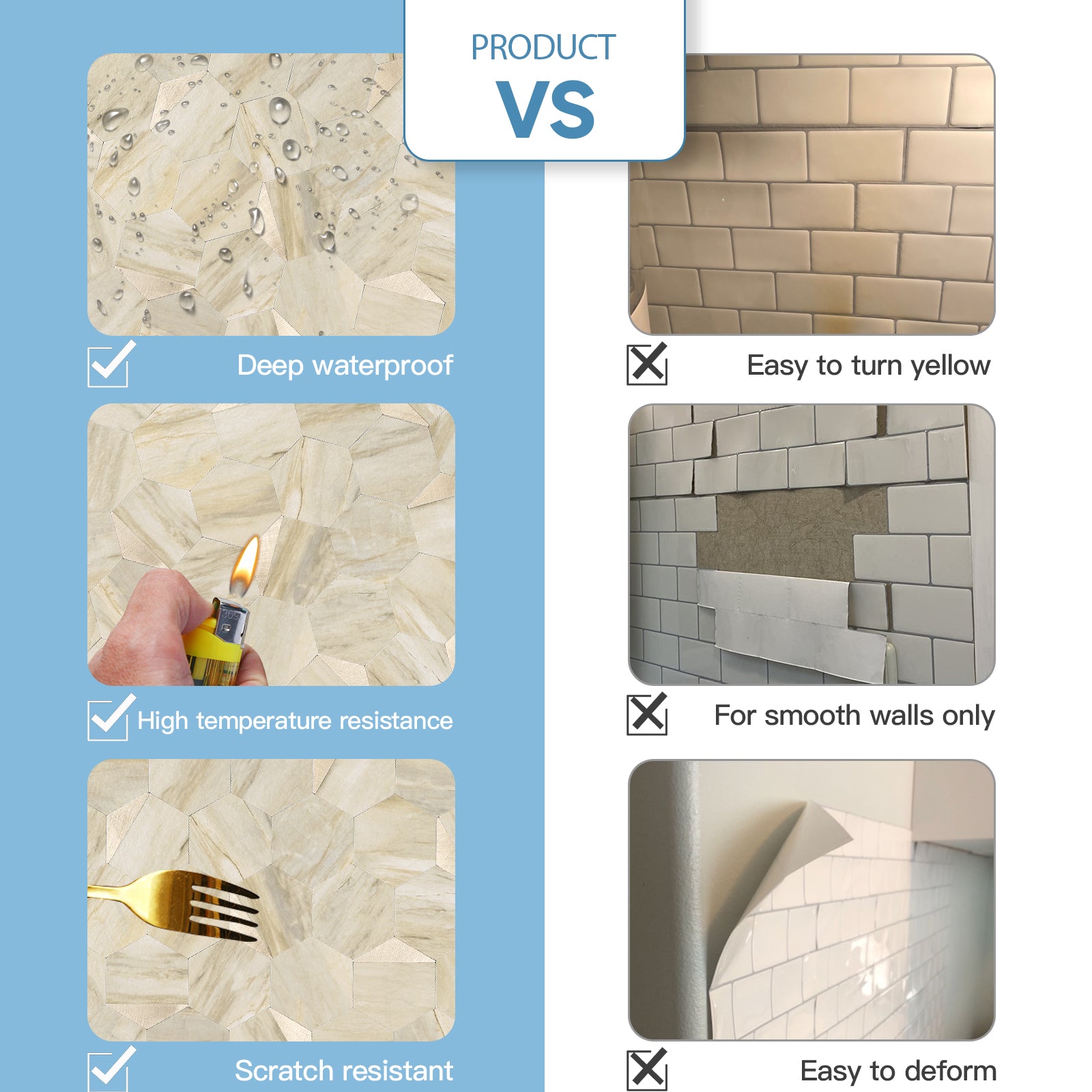 • √Waterproof and Heat Resistant: Keep your countertops and walls protected and looking great with these durable peel and stick tiles, resistant to heat and moisture. Perfect for behind stoves, sinks, and showers.