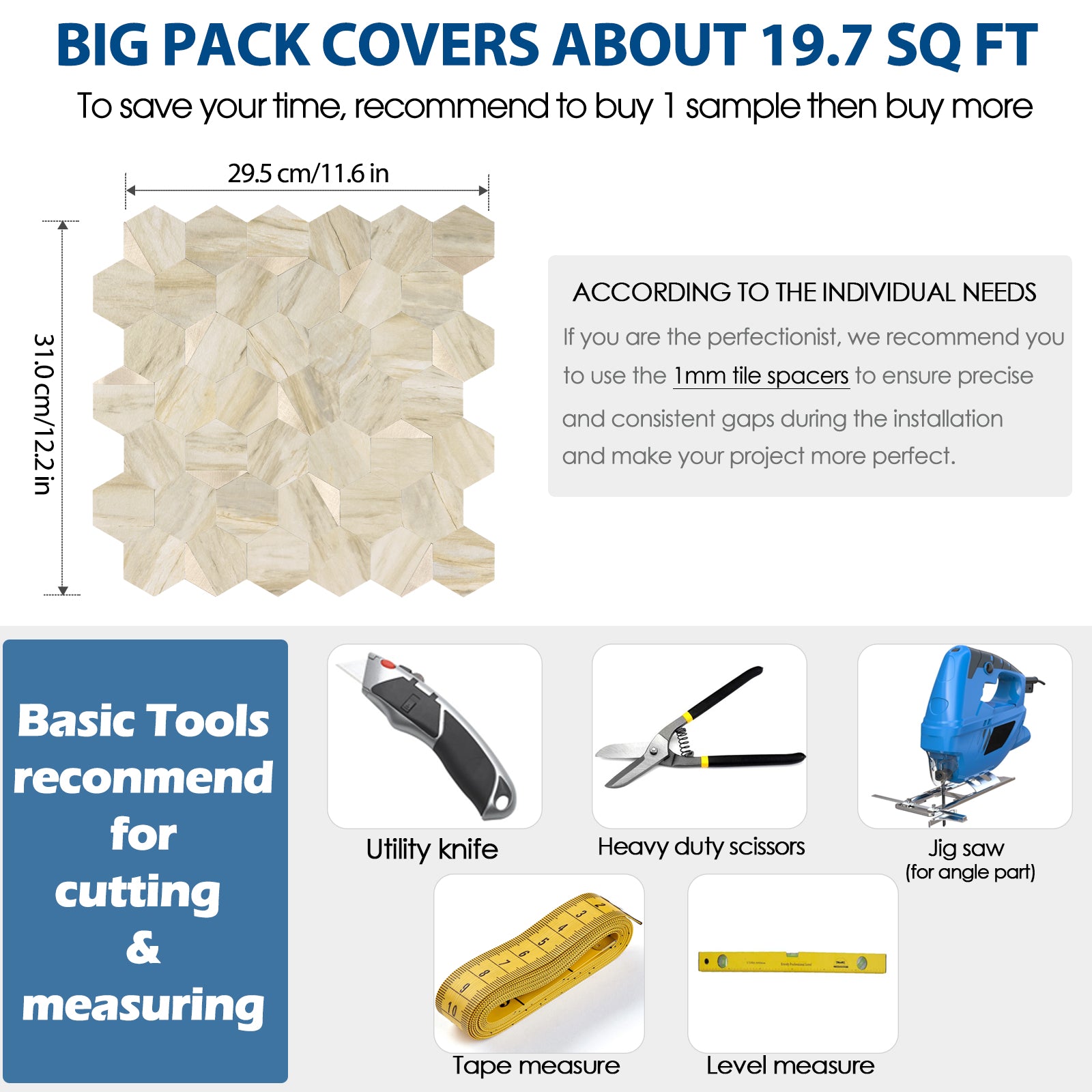 20 pick peel and stick hexagon tile
